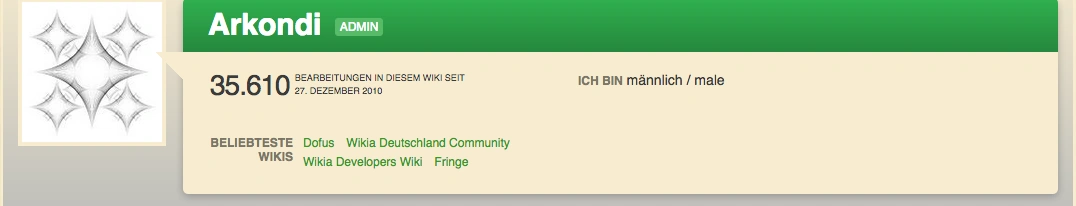 Heute stellen wir euch einen weisen und erfahrenen Wikianer vor. Arkondi ist seit ungefähr 4 Jahren bei Wikia und ist in vielen Rollen hier unterwegs. Er ist einer der vier Administratoren im Community Wiki, ein Mitglied im Community Council Wikia, wirkt im Developers Wikia mit, und editiert in vielen anderen Wikias. Angefangen hat alles im von ihm genannten Dofus Wiki.