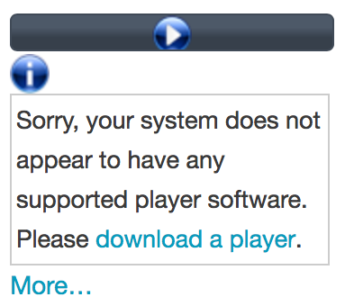 Weil MP3 keine freies/Open-Source-Format ist, kann die MediaWiki-Software keinen integrierten Player für MP3-Dateien bereitstellen und wir unterstützten das Format standardmäßig nicht.