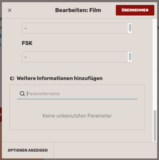 Auswählen von Parametern im VisualEditor-Vorlagenwerkzeug