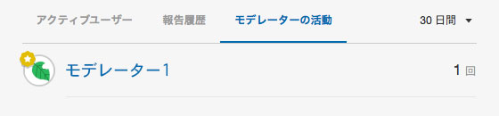 </figcaption></figure><p>ディスカッションページを管理するうえで、モデレーターによる活動履歴が残っていると大変便利です。本リストは、モデレーター権限を持つユーザーが取った介入アクションを単純に集計するものになります。集計に含まれるアクションには次が含まれます:投稿の削除、報告された投稿の承認、投稿のロック、および投稿のカテゴリ変更。