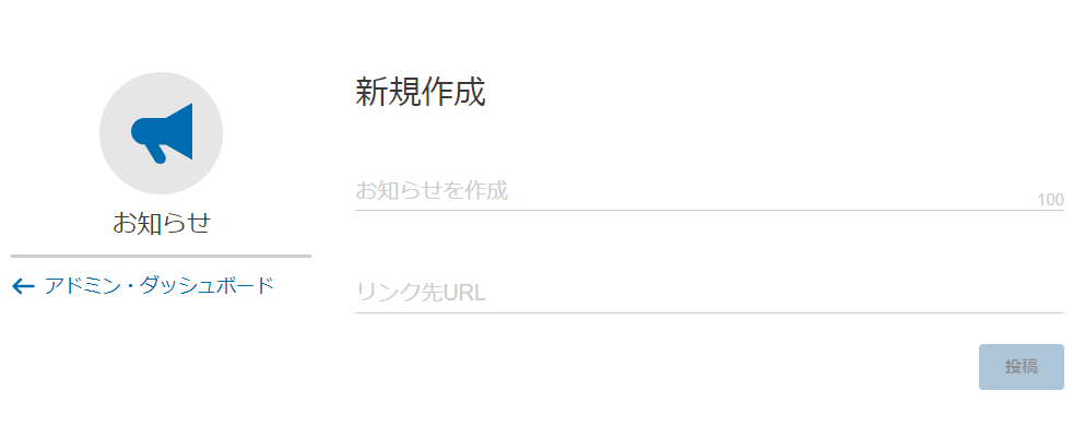 お知らせ作成時の記入事項は以下の2つです: