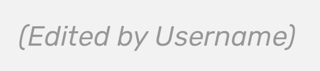 メッセージがアドミンやモデレーターによって編集された場合、そのユーザーグループのみが表示され、編集したユーザーの名前は表示されません。(注意:現在、ユーザーが編集したメッセージが他のユーザーには「Edited by moderator」(モデレーターによって編集された)と表示され、そのユーザー自身には「edited」(編集された)と表示されるバグがあります)
