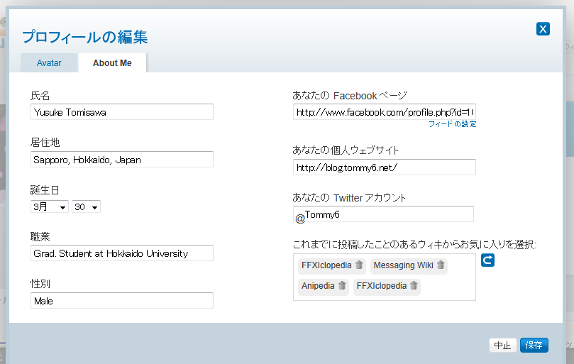 - 入力したプロフィールは、そのプロフィールを入力したウィキだけでなく、これまで編集したことのある全てのウィキに反映されます。どのウィキで見てもわかるような形の情報にしましょう。