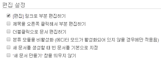 환경설정의 "편집상자" 탭에서 편집 관련 같은 설정을 변경할 수 있습니다. 각 설명에 대한 정보는 아래를 참고하세요.