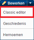 - Andere gebruikers zullen de klassieke tekstverwerker zien. Dit bevat de oudere visuele bewerkingservaring en bewerken door middel van wikitekst in de broncodemodus.