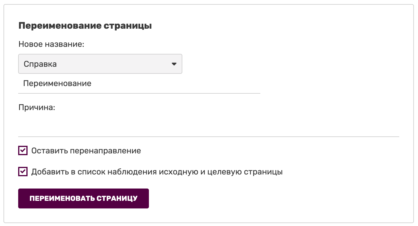 - Если вы являетесь администратором, вы можете исключить создание перенаправления со страницы со старым названием на страницу с новым.