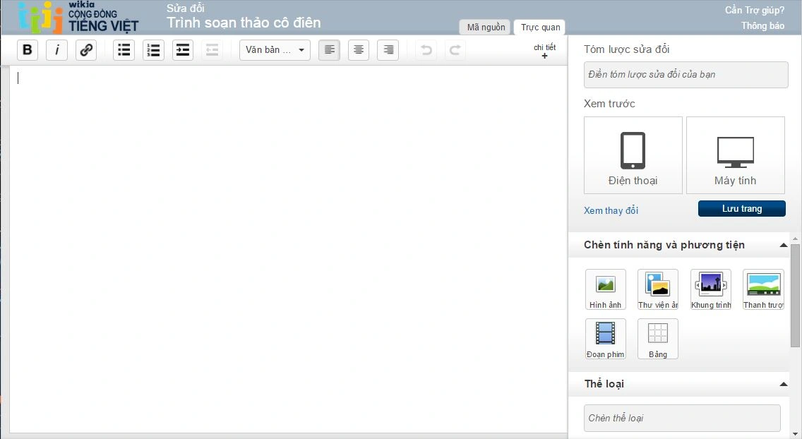 - Hầu hết người dùng nặc danh và người dùng mới sẽ thấy trình soạn thảo trực quan, đây là một trình soạn thảo mới giúp người dùng dễ dàng soạn thảo trên giao diện trực quan.