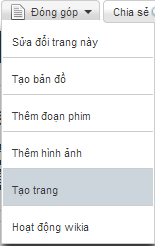- Nhấp chọn nút đóng góp ở góc phải trên của wiki. Sau khi nhấp, bạn sẽ thấy một danh sách xổ xuống có chứa mục "Tạo trang".