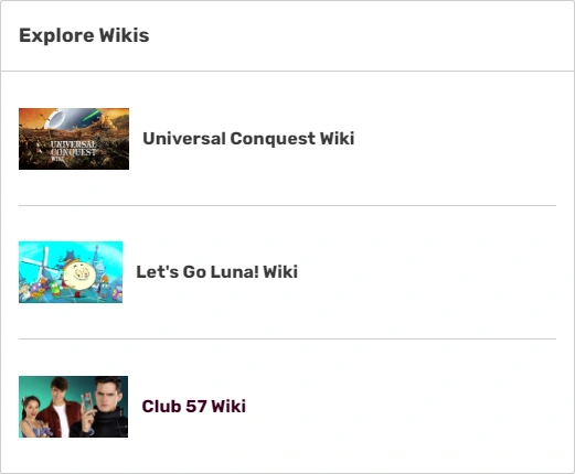 Fandom Spotlights were images and links that appeared at the bottom of each page in the "Explore Wikis" module. The spotlights were created by Fandom staff and ran for a few weeks.