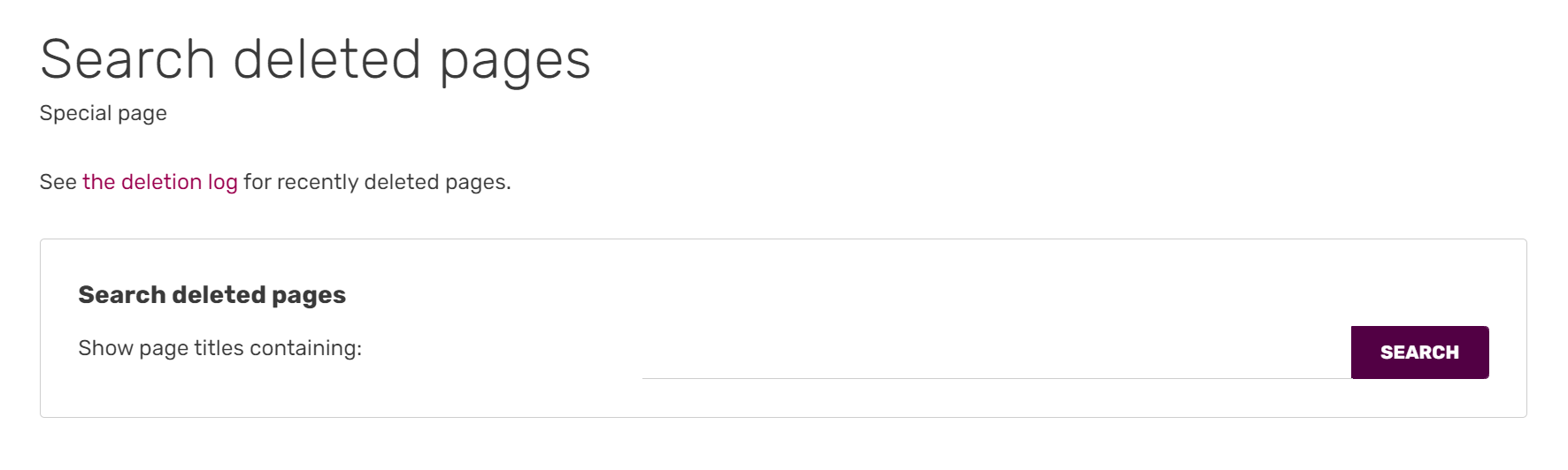 - When viewing a previously deleted page, the log of the deletion is shown.