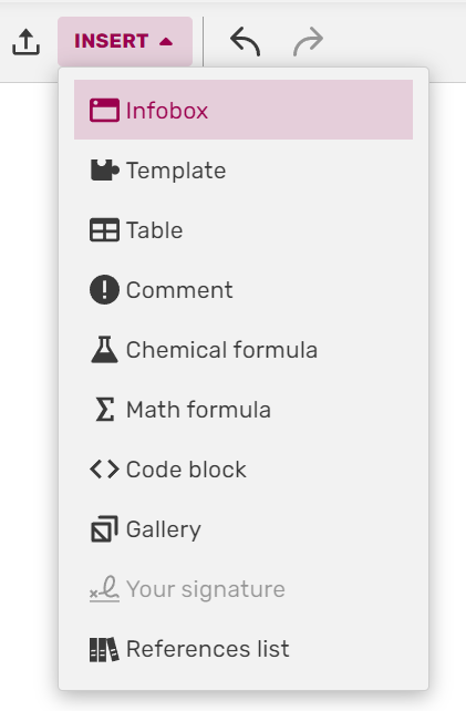 You can add an infobox to an article the same way as you would any other template, either via the editor's built-in tools, or through the editor's source mode. In the VisualEditor, Portable Infoboxes can quickly be inserted via the Infobox option on the 'Insert' dropdown.