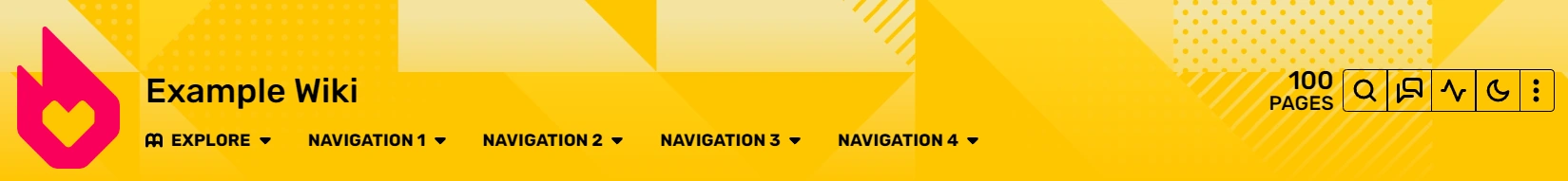 The navigation menu can be found in the page header at the top of every wiki page. It has the option to add up to four customizable menu options, in addition to the "Explore" menu.
