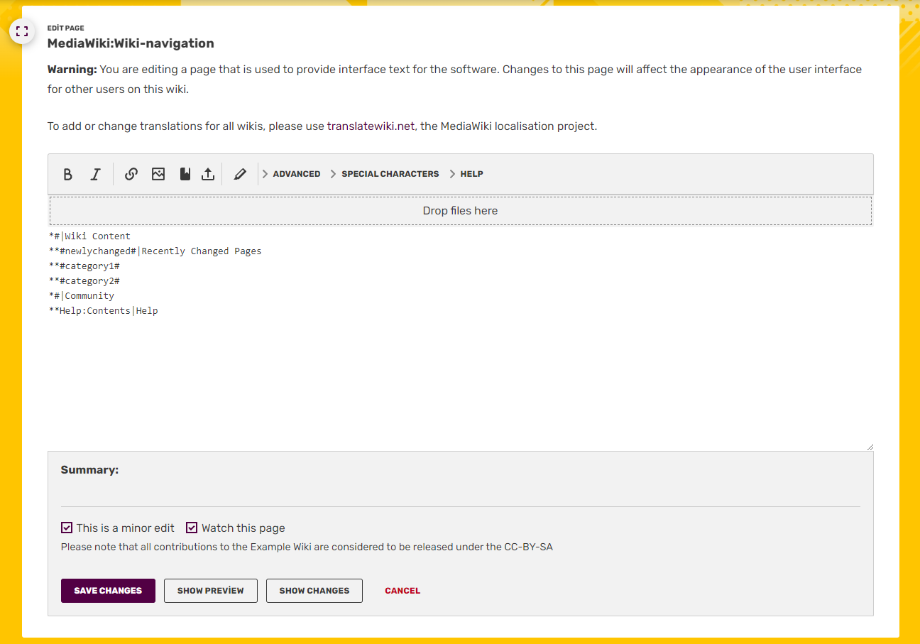 Keep in mind that almost all visitors to your wiki come to read articles, not to create them. Editors only make up 0.05% of Fandom's visitors, and while wikis couldn't even exist without their hard work, the local navigation bar should first and foremost serve your readers. Editors create awesome content, and the navigation bar helps readers find it, while other site elements, such as the bottom toolbar, help editors access the tools they need.