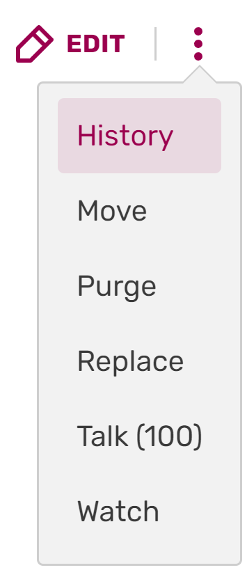 Each editable page on Fandom has a page history, which consists of the old versions of the page text, as well as a record of the date and time of every edit, the username or IP address of the user who wrote it, and their edit summary.