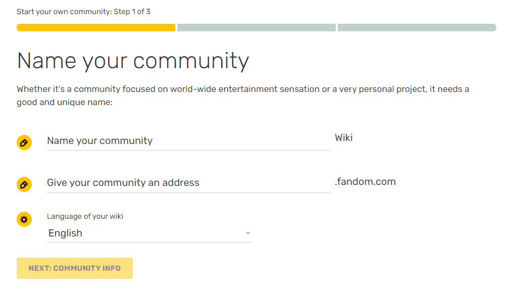 - Choose a title that will attract people to your community and explain to them what the wiki's subject is about.