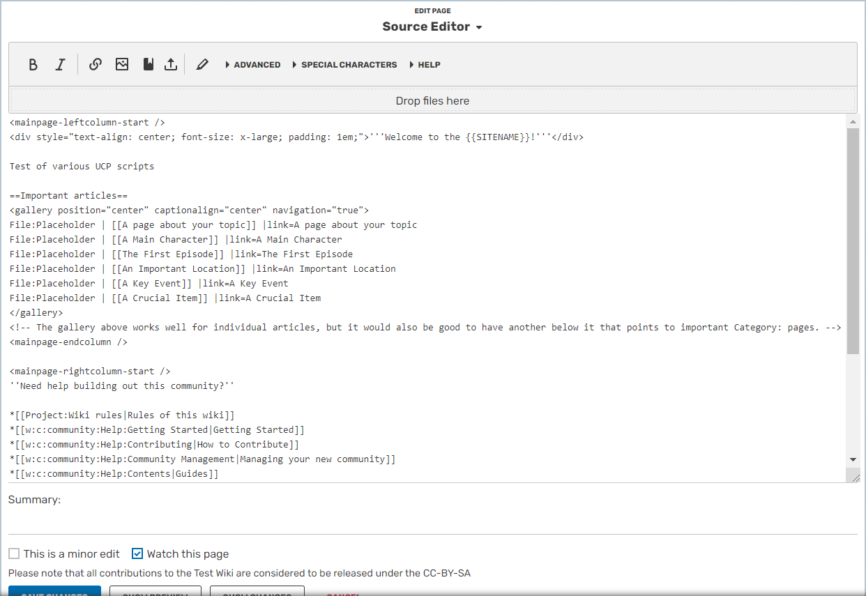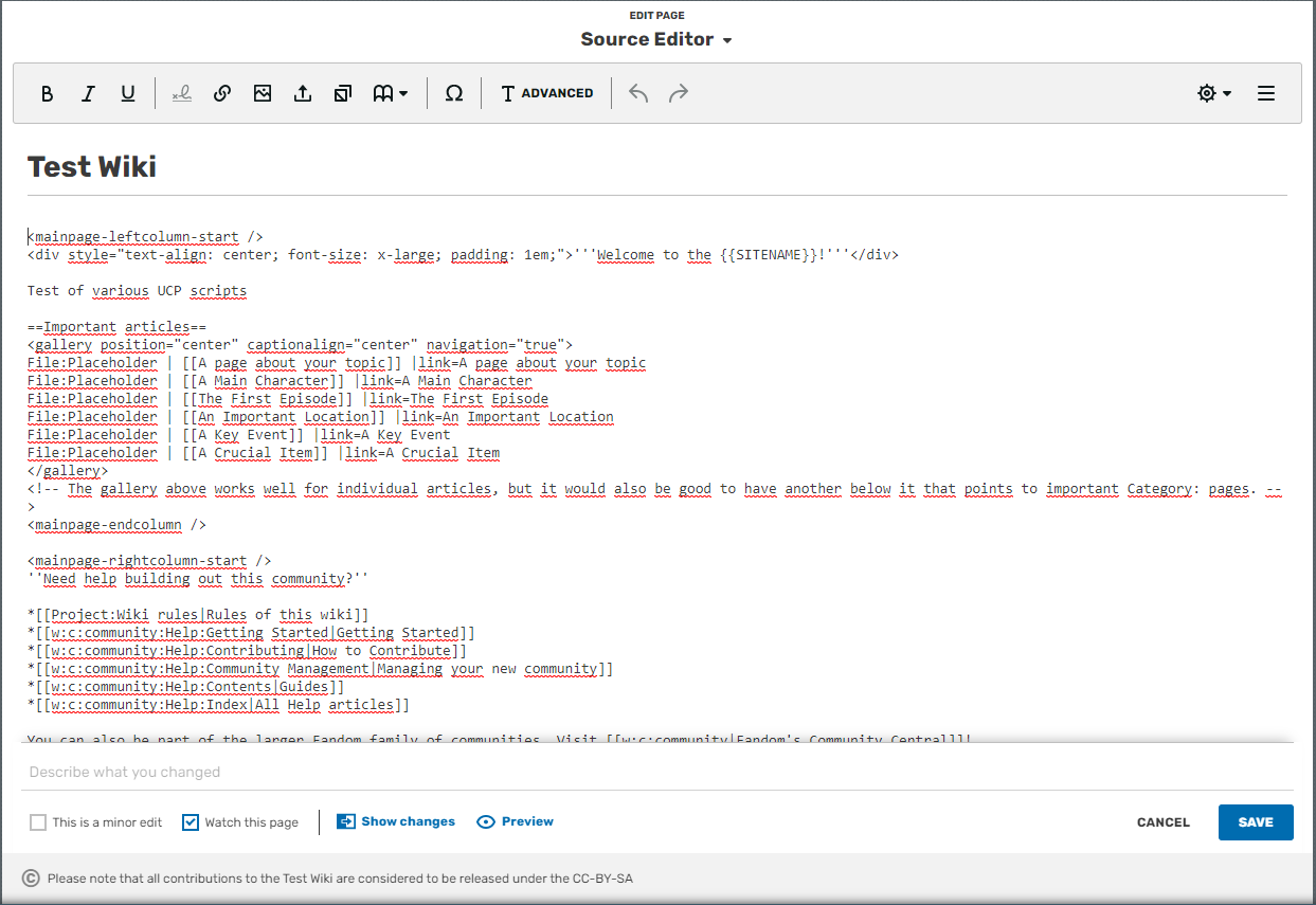 The Source Editor is a type of editor that allows editing of pages via wikitext or some HTML.