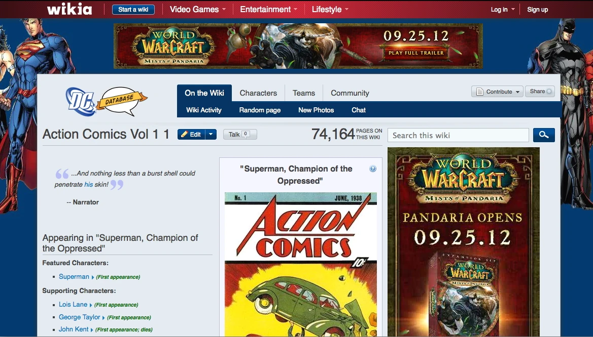 The header bar that contains the Wikia logo, Wikia-managed links, your avatar and username, will change to span the full width of your browser window. There will now be a space between this header and the top of the wiki page. The reason for this change is to provide better visual separation between Wikia-wide content (the header), ads, and the wiki-specific content. This new space will show part of your wiki's background. Currently some wikis have a background where the central portion is empty of image content, since that has never been visible before. So our suggestion is to fill out the central portion of the background with image content or a solid color. Note that the vertical size of this space may vary depending on the height of ads that are placed there.