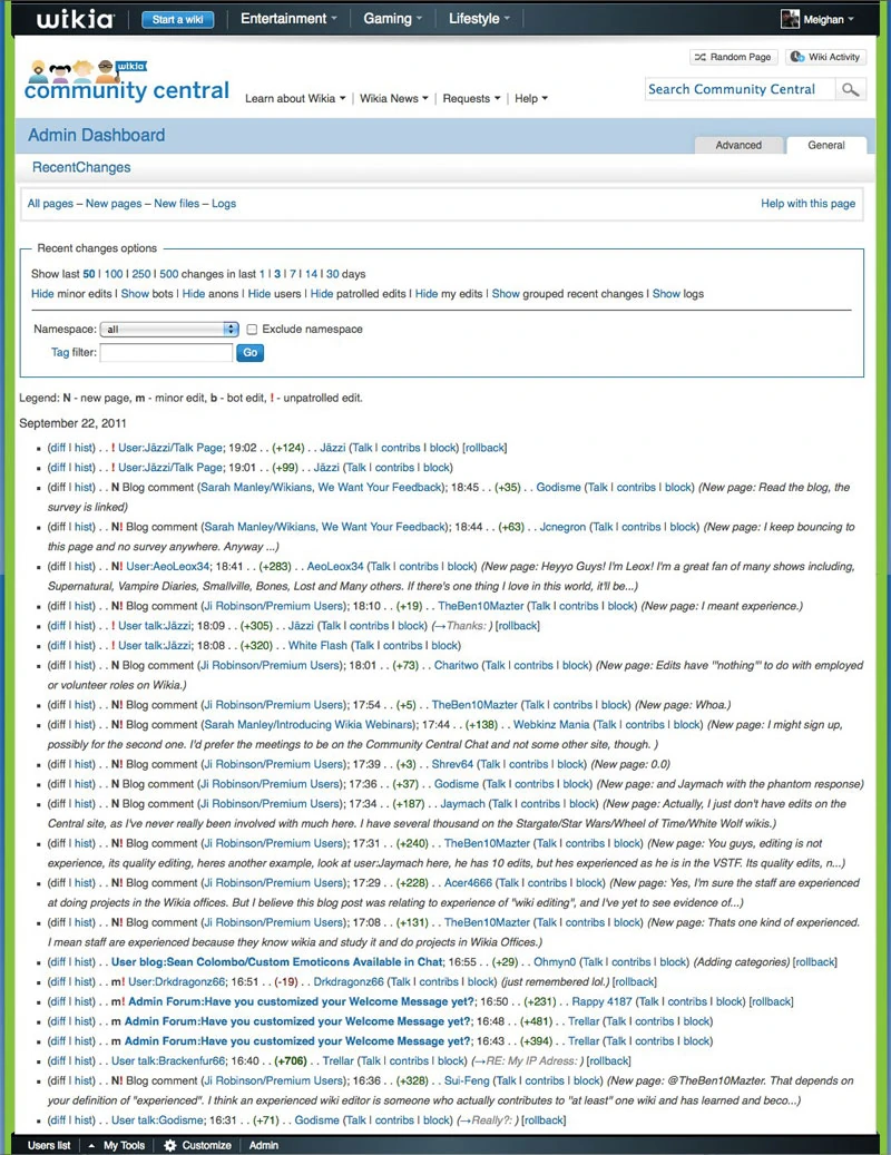 Now that you are armed with knowledge of how Wiki Activity works let's get a little more detailed and technical with Recent Changes.