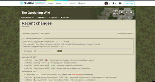 For an admin, or for any keen contributor, this page is the starting point for understanding everything that's going on on your community. You can see exactly what pages are being edited, and have links to all the vital information including contribution pages, profiles, and the full logs of all community activities.