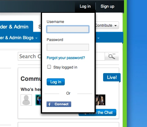 Log in will now appear as a link in the global nav as a drop down module. This will make logging in quicker, easier and with less clutter. It's a single action, making it less obtrusive and keeping you on the original page you logged into. It also syncs up with the site's overall design and feel.