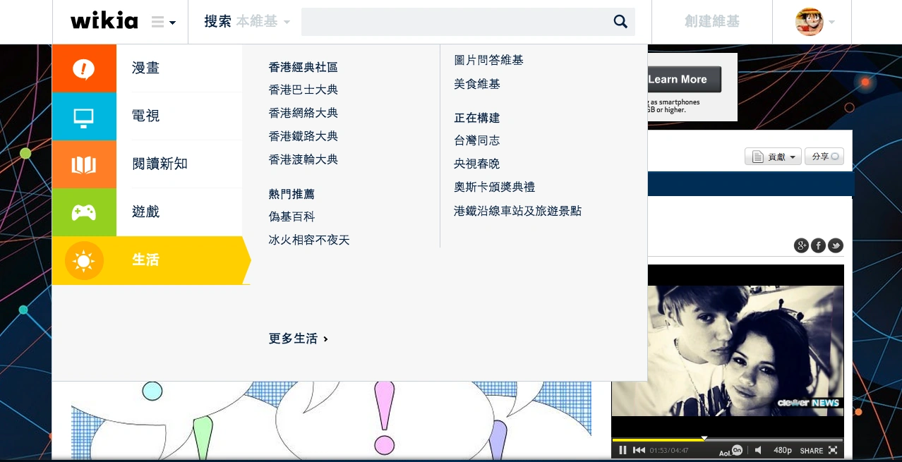 我们还对目前所有的中文主题社区进行分类,包括游戏,电视,漫画,阅读新知和生活主题等。所有的主题社区都将为你展示最新最受欢迎的中文Wikia主题社区,并且所有的活跃主题社区都将有机会登陆全球门户导航。