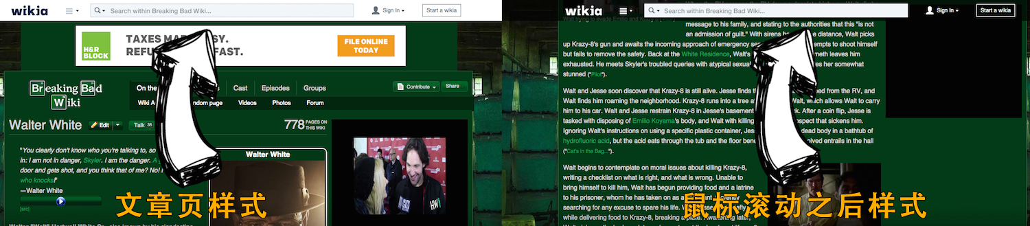 - 当用户下滑鼠标的时候,白色的背景颜色将变成透明,以配合每个社区不同的主题颜色需要