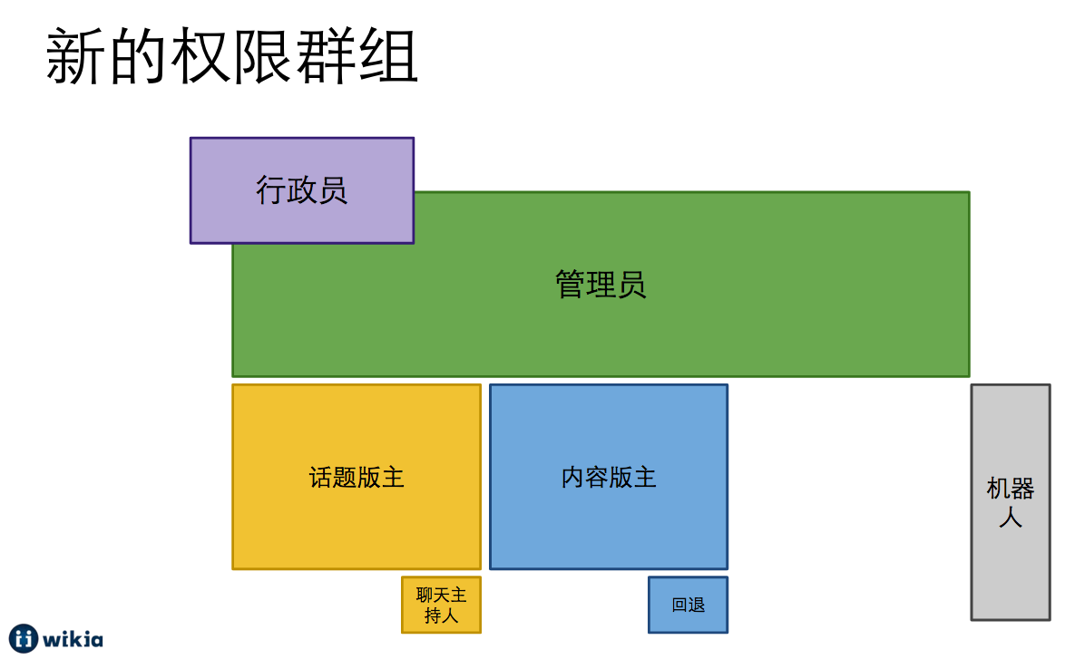 随着Wikia的不断发展,社区用户使用的功能和产品也在不断增多。2016年,新添加的功能将对许多详细分类的管理员增添许多额外的工作。此时发布这个新的群组权限,将可以帮助管理员更加细分所有管理者的工作,优化社区的管理,也减少尤其是大社区管理员的负担,允许Wikia的产品设计者实现在不同功能之间更加持久的构建和维护。