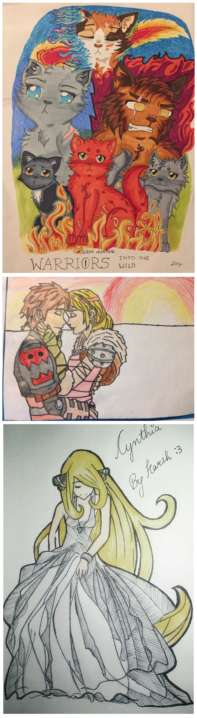 图片自上而下来自于: Warrior Silverlight from German Warrior Cats Wiki, Tankmaster431 from How to Train Your Dragon Wiki,Ash vs gary from Pokemon Wiki