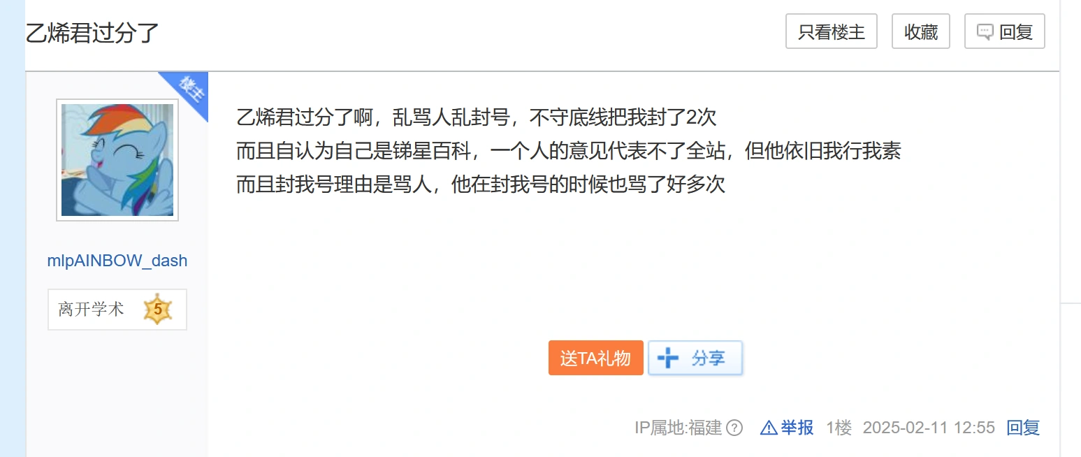 作为超理社区有一定关注度的成员,我的行为给超理社区带来了不良影响,并引来他人效仿。我在此向超理社区道歉。