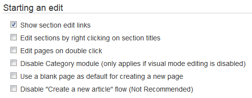 在用戶設定中的「編輯」標籤中,包括下列兩種頁面創建的選項: