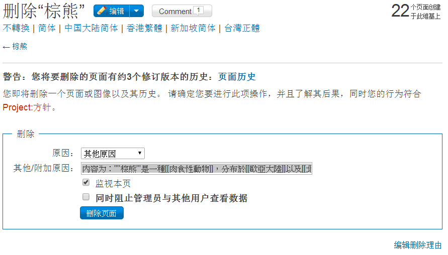 - 進一步的資訊,參見Help:刪除。